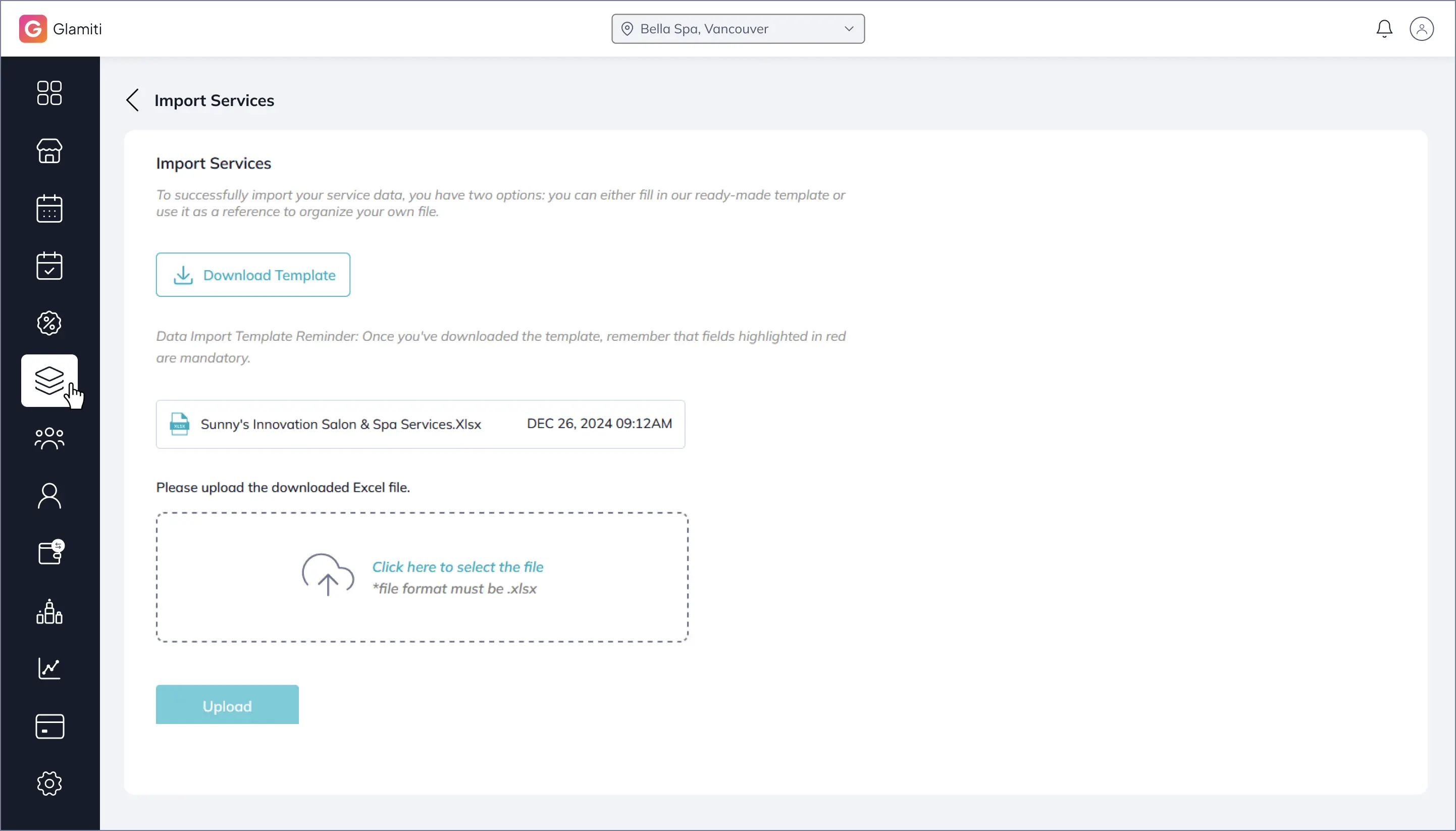To import services, go to the Service Listing Page and click "Import Service".